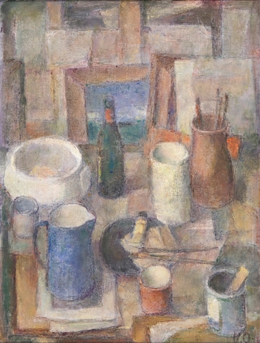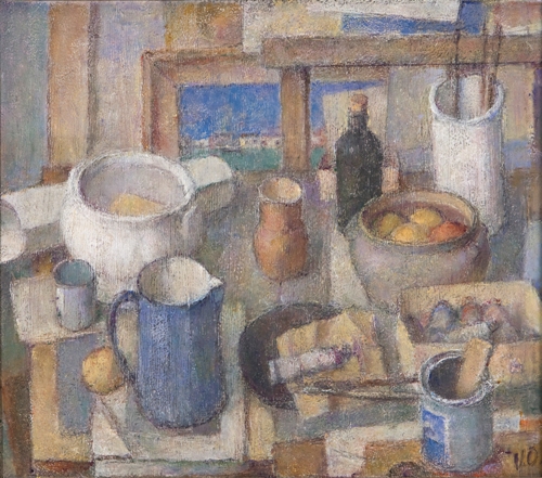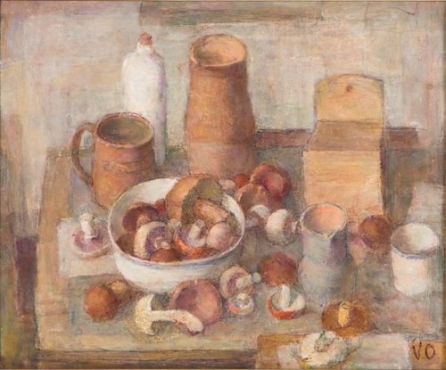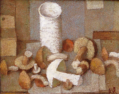 Klusā daba ar dzelteno šķīvi un sēnēm